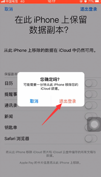 4选择需要保留的数据,点击“退出登录”,重新登录即可。