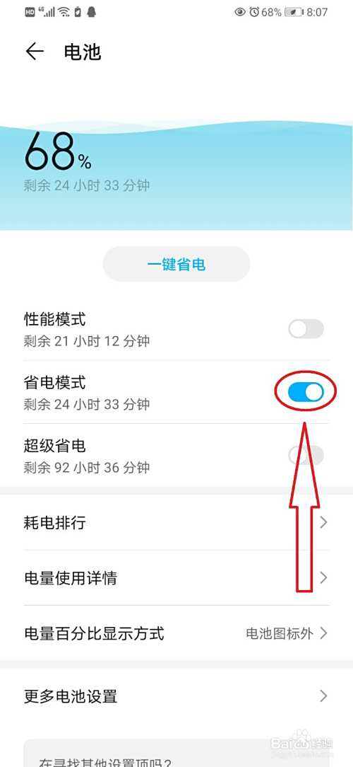 如果我们的手机长时间无法得到电量的补充,那最好就开启省电模式,来延长我们手机的待机时间,今天我们就以华为手机为例,来分享开启省电模式的设置方法,具体操作如下。