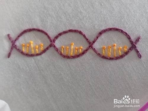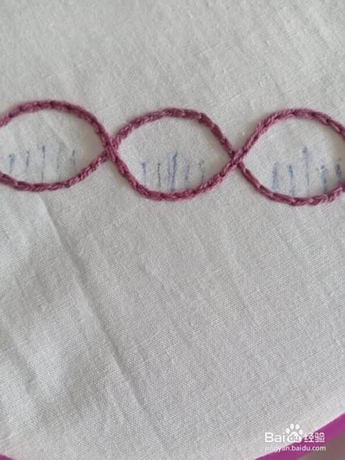 后面的一接都是这样绣的,所以就不多说了,大家慢慢把它绣完就可以了。绣完之后,用笔在每个环里面画几条直线。