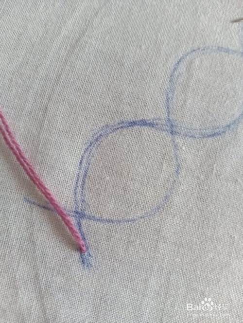 接着,取出针线,在任意一条辅助线一端出针,绣制“锁链绣。”