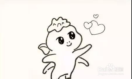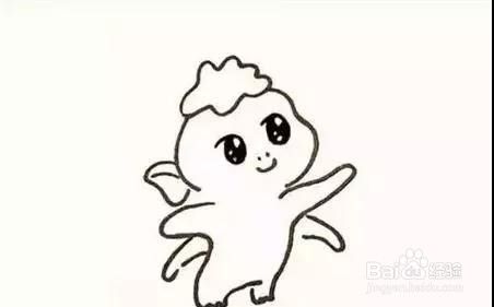 然后就是勾勒出胡巴的身体,因为胡巴是开心到飞起的状态,所以它的两只手要张开,成飞行的样子,大家仔细观察线条的变化。