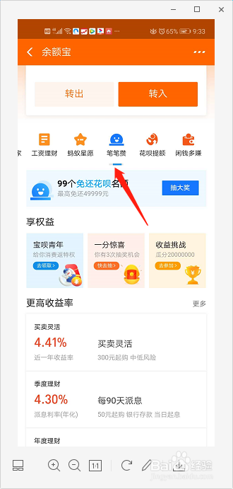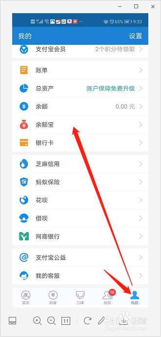 点击进入右下角的【我的】,选择【余额宝】,如图所示