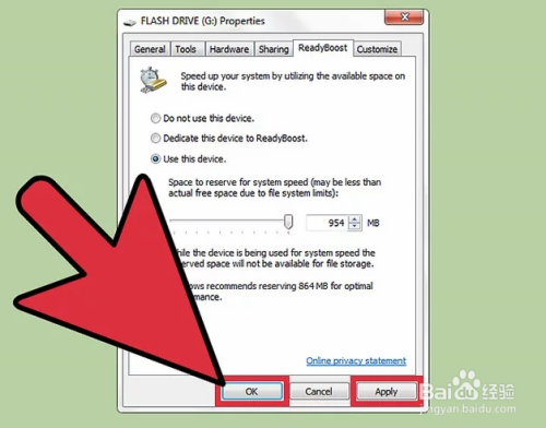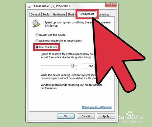 *“Ready Boost”选项可以帮助电脑将优盘用于扩展内存,但是,不能从物理上提升安装的“内存”。它无法加速游戏运行,但能帮助Windows系统稍微提升运行速度。