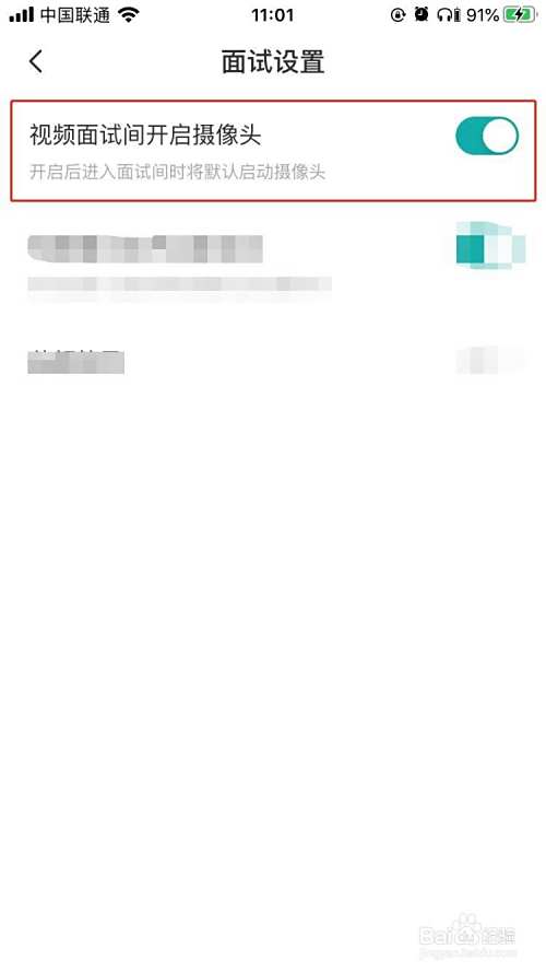 5.打开视频面试间开启摄像头的开关,这样一来,当我们和应聘方进行视频面试的时候,BOSS直聘就会自动打开前置的摄像头,不需要我们手工去打开。