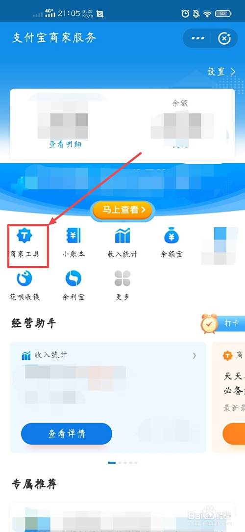 1.打开“支付宝”,搜索“商家服务”,点击“商家服务”