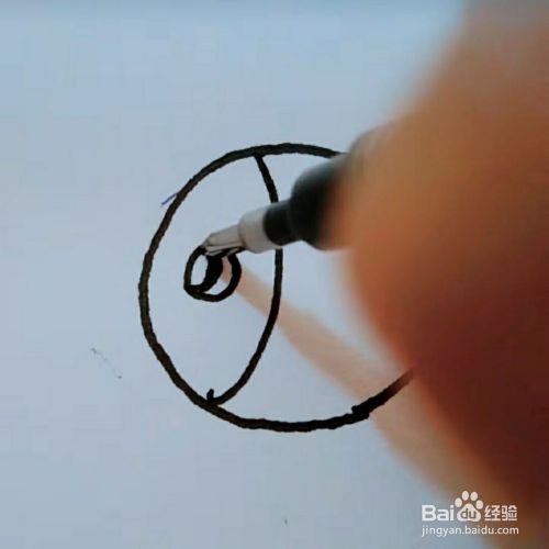 第二,在弧线的左边,给鱼画一只眼睛,具体画法,跟着下面的图片操作: