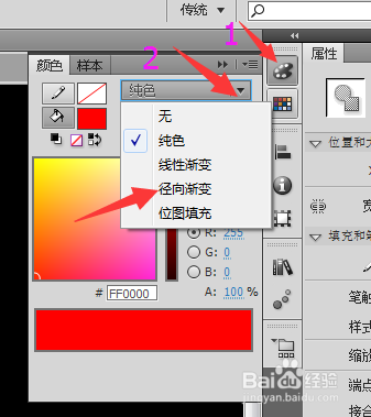 按着上面数字的步骤来操作就可以了 位置移动好了之后也可以改变球的颜色 首先还是先选中它 前面有步骤我就不说了 然后就是在颜色区域里选择如图所示: