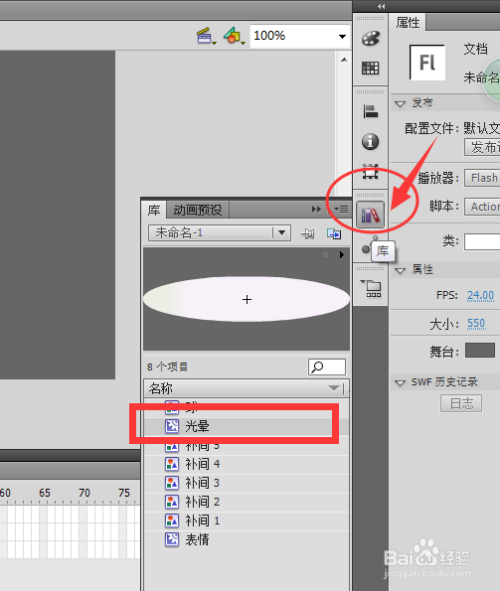 在文件菜单栏中“插入”—“新建元件” 名称“光晕” 类型“影片剪辑”确定就好了