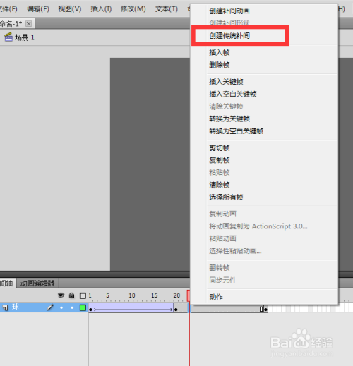 在1-20 20-40之间都要添加“传统补间”“眼睛”和“球”都要添加的 “传统补间”