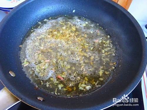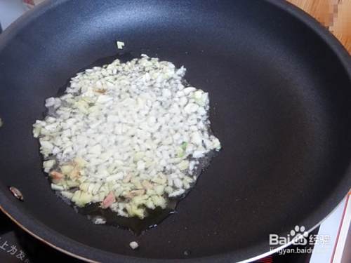 热油,放入蒜末和姜末爆香