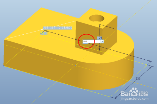 双击底部实体拉伸特征,修改尺寸,再生模型,让方块变长。