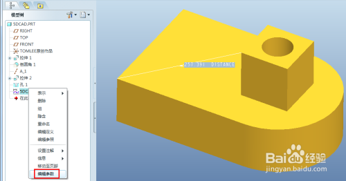 定义proe关系前,先在模型树选中分析测量特征,右键快捷菜单选择“编辑参数”。