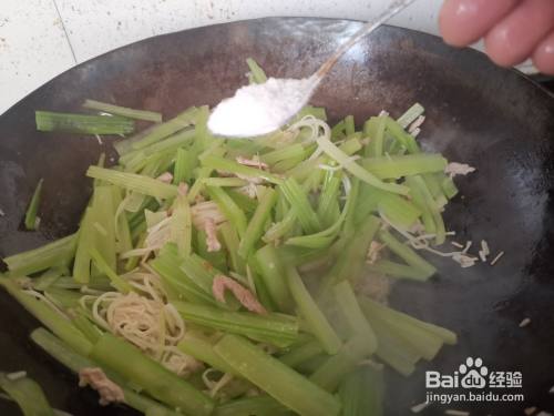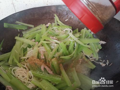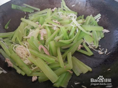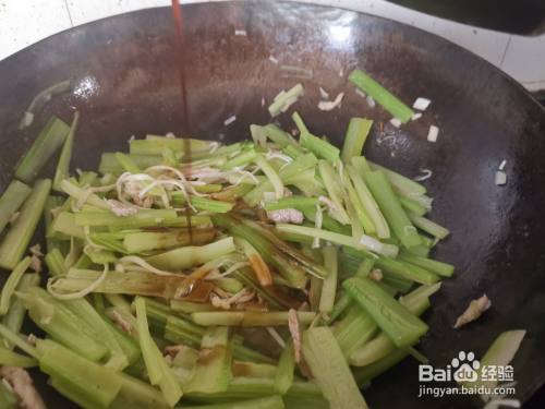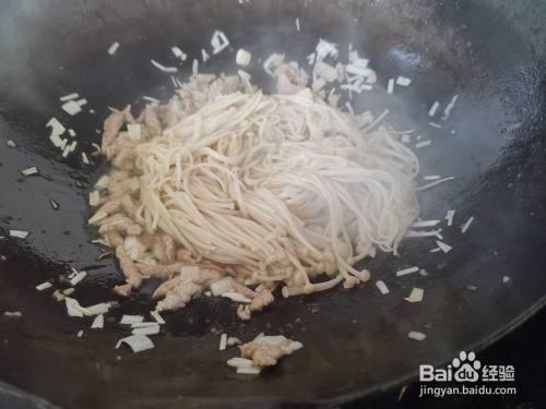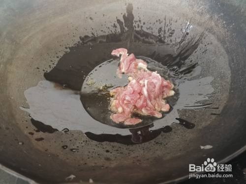 猪肉丝下入锅中加油炒香变色后,加入洋葱段翻炒出香味