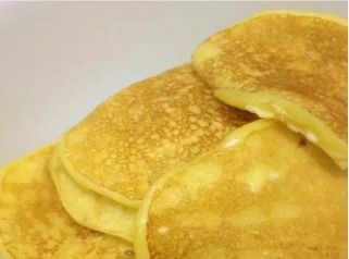 平底锅刷一层油,如果是不粘锅,宝宝又比较小的话,不放油也可以,舀一勺面糊,摊成宝宝手掌大小。注意要及时翻面,否则面容易糊,火要调的小小的