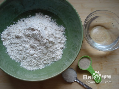 高筋面粉200克、酵母5克、水170克、糖一勺、盐一勺、碱2克、植物油。