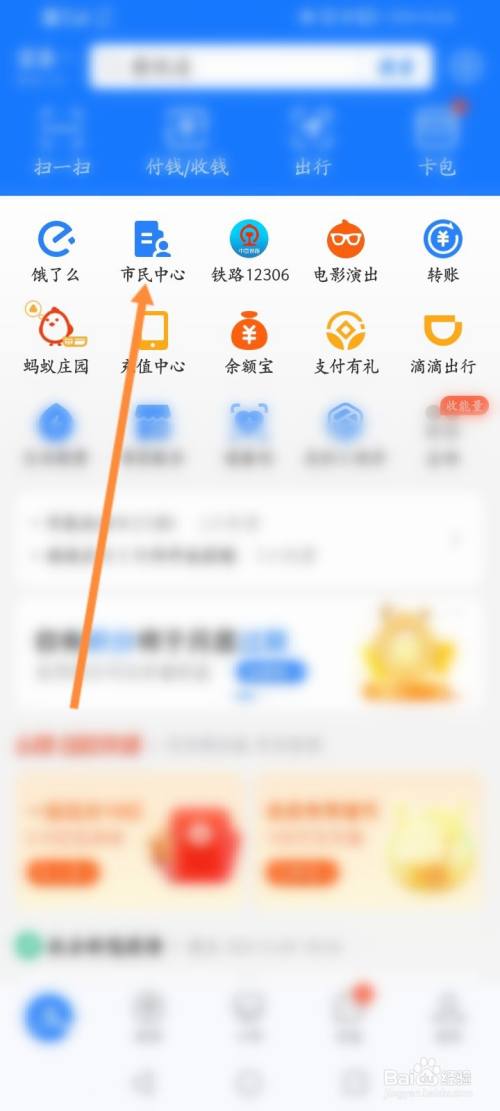 首先打开手机上的支付宝,点击市民中心。