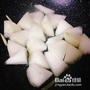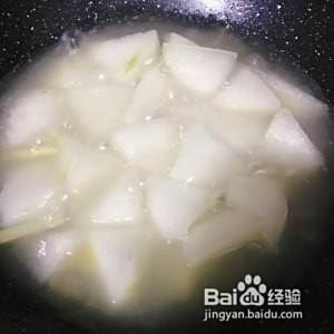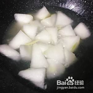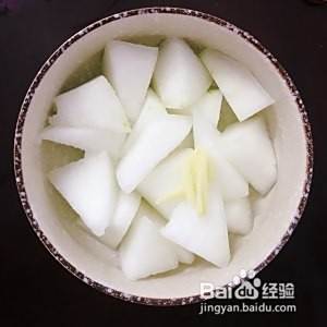 把冬瓜去皮切成滚刀块,姜片切成丝