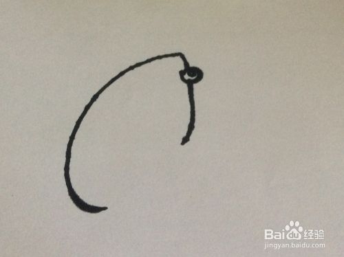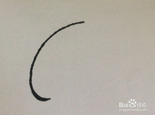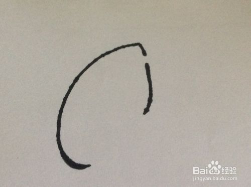 在左侧画一条开口方向向右的,长长的弧线。弧线的下端是圆圆的。