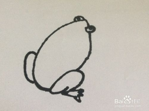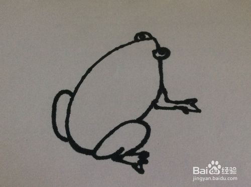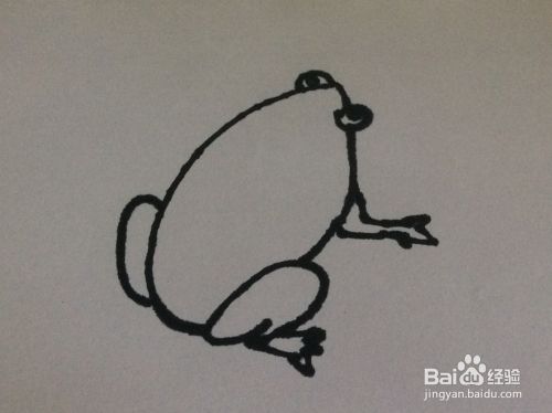 在青蛙身体的下侧,画出青蛙粗壮的后腿。两条后腿的粗细一致。