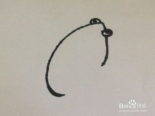 在左侧弧线的上方,画一个半圆形。在半圆形上画一个小小的圆圈。