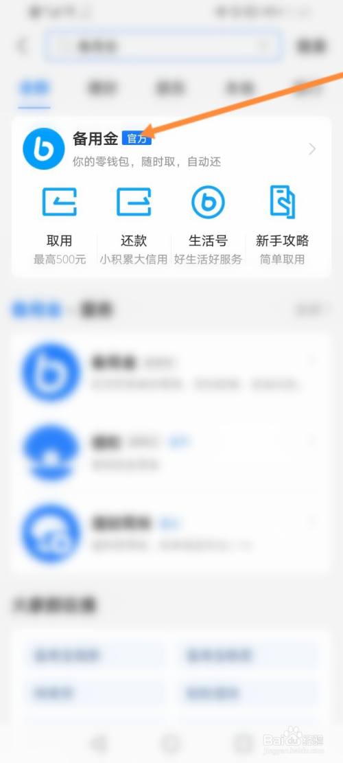 进入支付宝,输入备用金。