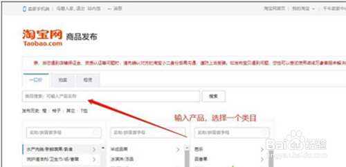 此时已经跳转在发布宝贝界面,输入一个产品名字,选择一个类目;