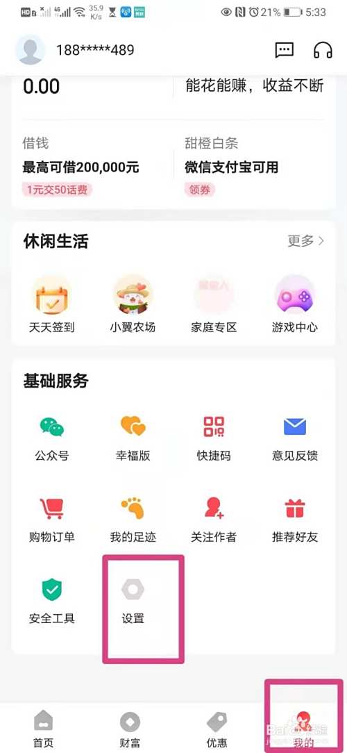 打开手机翼支付,点击右下角“我的”,页面跳转后点击“设置”。
