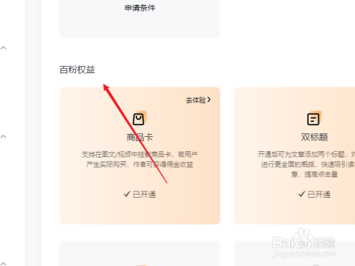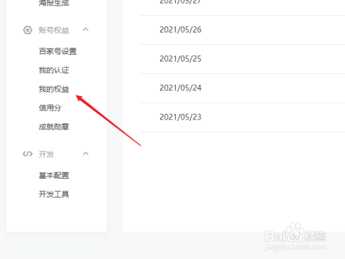 打开浏览器登录百家号后台,点击左侧我的权益菜单