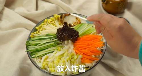 8放入炸面酱拌匀即可。