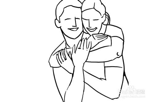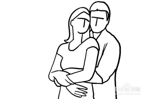 女士从后方比较嬉皮的抱着男士,男士挽着女士的双手,照片的重点在于要自然,表情欢乐、自在。