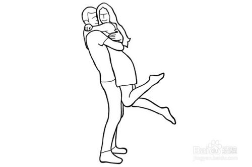 男士抱起女士,重点在于男士要尽力抱,女士的脚要翘高一点。