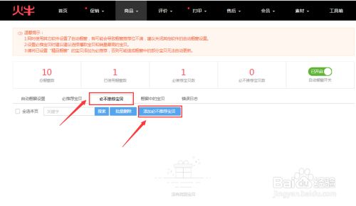 管理自动橱窗页面可以查看当前必不推荐的宝贝数量,当有宝贝需要参加推荐的时候,可以在必不推荐宝贝页面勾选该宝贝后,点击【批量删除】按钮即可完成;或者直接点击商品后面对应的【删除】按钮即可。