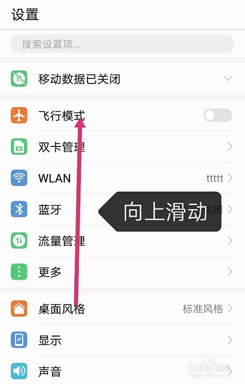进入设置界面以后,向上滑动手机屏幕,如图。
