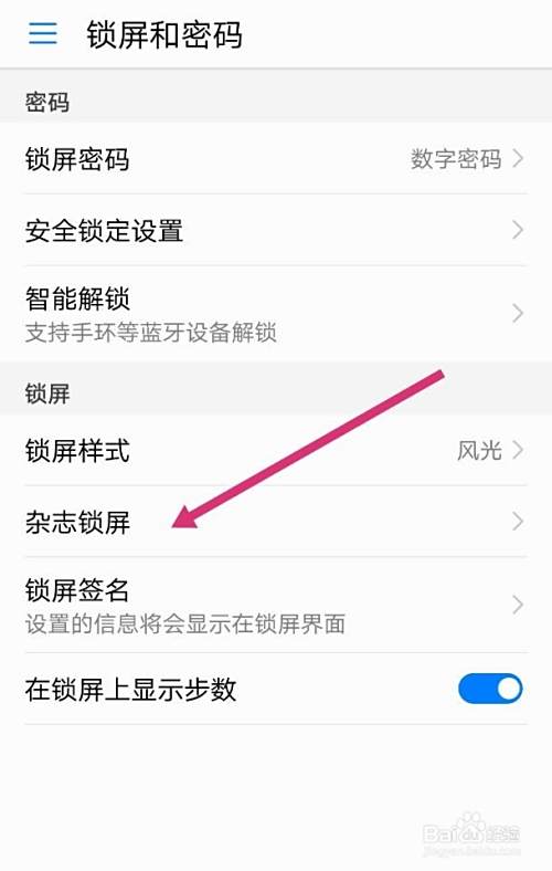 进入锁屏和密码界面后,点击杂志锁屏进入,如图。
