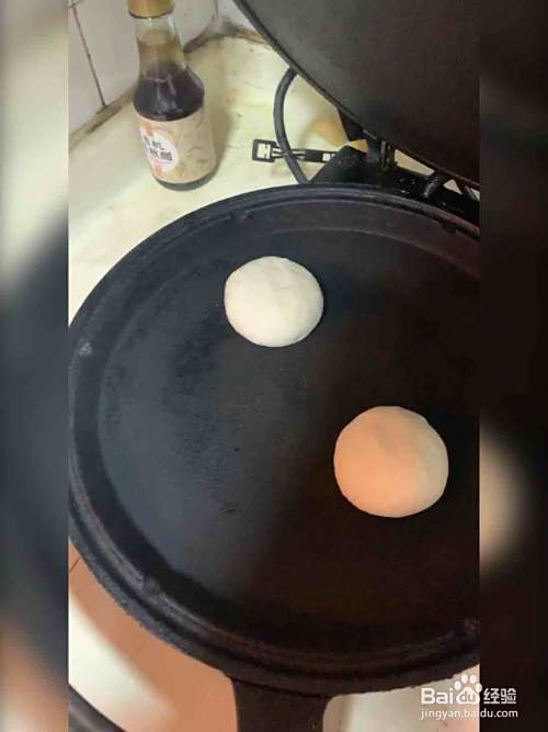 醒发好的面团放入预热好的电饼铛,盖上盖子,双面加热到灯灭就是熟了