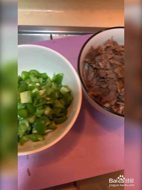 面团醒发期间把卤牛肉和青椒洗净切丁