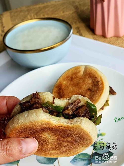 最近卤了牛肉,又有青椒,就想着做个肉夹馍尝尝。