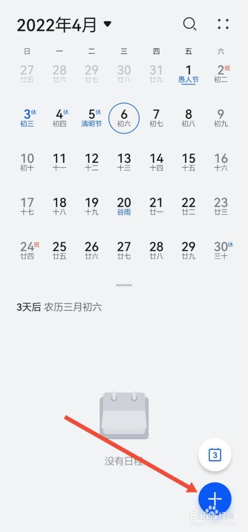 华为手机进入日历之后,选择一个日期,点击下方的加号。