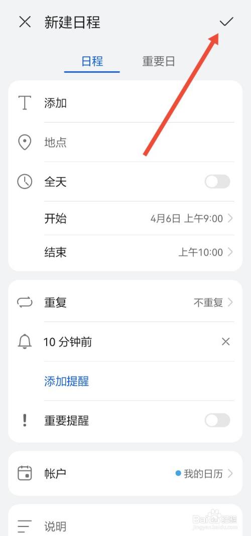 输入完毕之后,点击右上角的✓,即可完成添加信息。