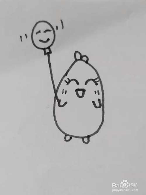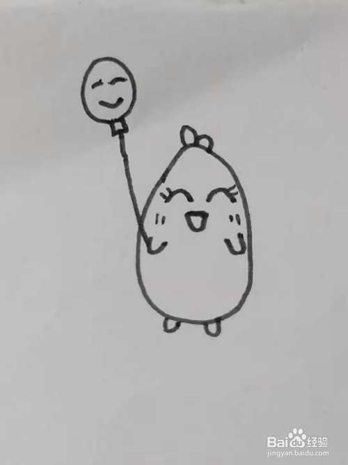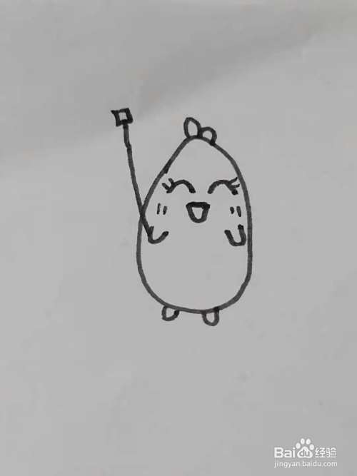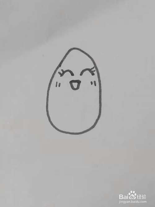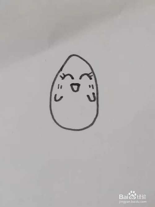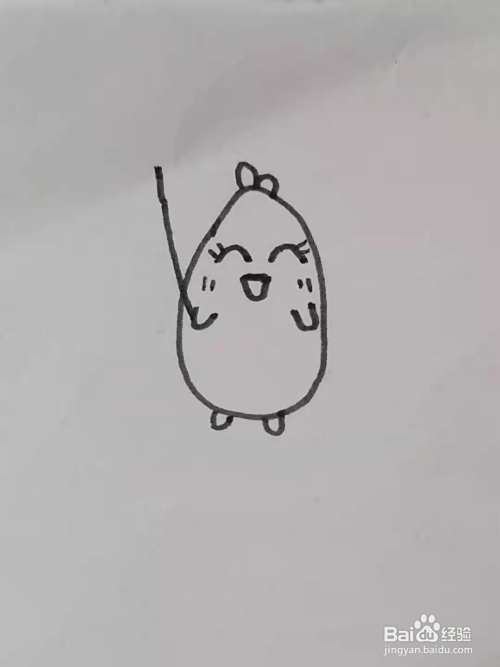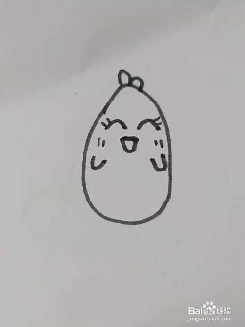 半圆形的嘴巴的两边分别画两条竖线,作为脸蛋。
