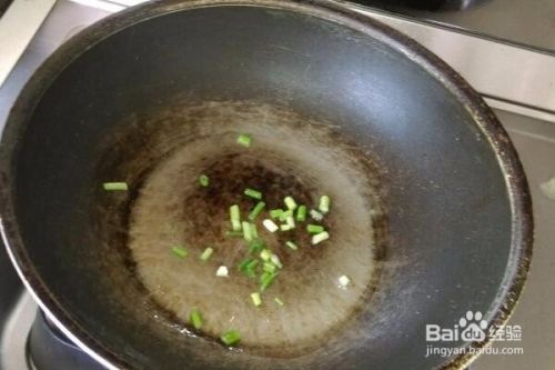 开火将锅加热后,在锅里倒入适量的香油后,待油微热后,放入葱炸一下,在放入备用的肉丝在锅里炒一下。
