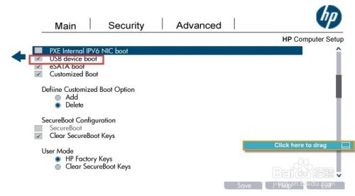 商用笔记本UEFI BIOS(菜单为Main/Security/Advanced)如何开启USB设备启动