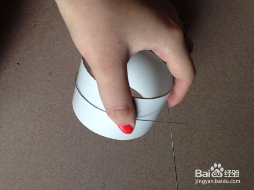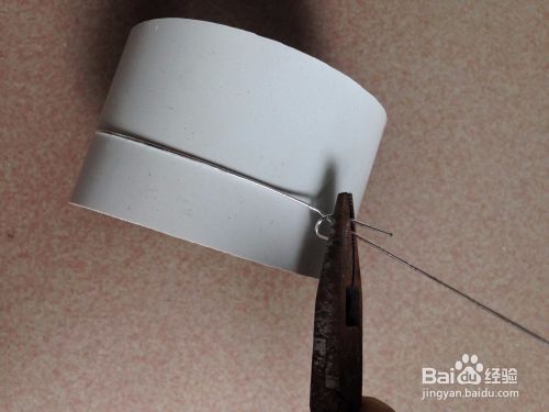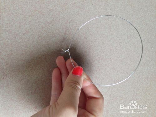 将彩丝围绕圆形模具一圈,将其多余部分用夹钳剪掉,,得到一个圆环。