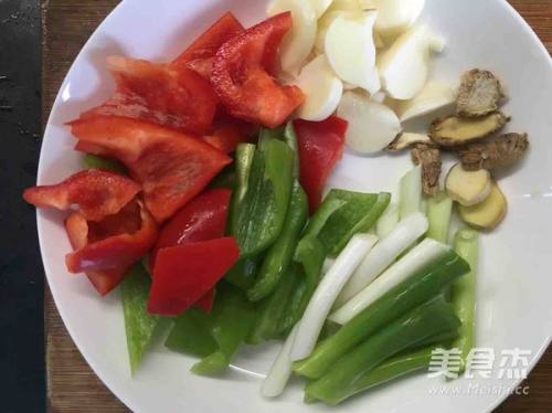 5葱姜蒜和辣椒,除了姜蒜,其他都在出锅前放,姜就用家里没用完的干姜。这样更贴近外婆一些。