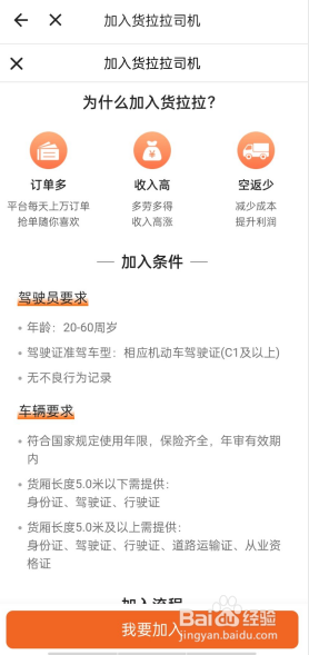 输入自己的手机号和收到的验证码,点击带车加入即可。审核通过,下载司机端即可接单拉货!