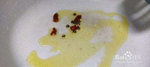 锅热倒油,油六分热,放入红辣椒和花椒粒