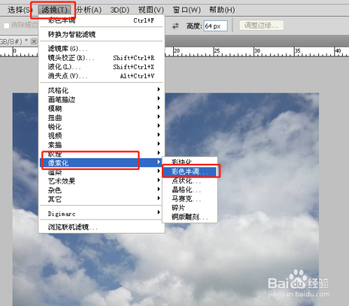 第三步,点击滤镜,点击像素化,点击彩色半调;