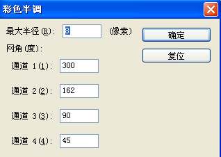 第五步,看图片效果,不合适,继续修改彩色半调的值。