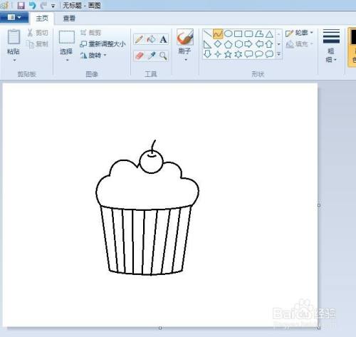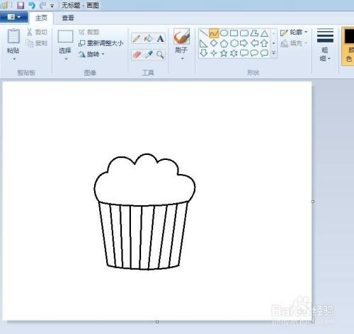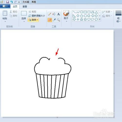 第四步:在画好的纸杯上面,画出类似于云朵的蛋糕形状。