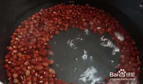 把洗干净的红豆倒入到锅中,加入适量清水,大火烧开,中火煮20分钟左右。